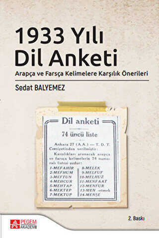7 Mart 1933 akşamı Atatürk’ün başkanlığında yapılan bir toplantıda Türkçedeki Arapça ve Farsça kelimelere karşılıklar bulmak için bir anket düzenlenmesine karar verilir. Türk Dili Tetkik Cemiyeti tarafından belirlenen 1382 kelime, 12 Mart 1933’ten itibaren 10-15 kelimelik listeler hâlinde her gün gazeteler ve radyolar aracılığıyla halka duyurulur. Halkın bu kelimelere Türkçe karşılık bulması istenir. Önerilen karşılıklar da yine halk tarafından gazetelere veya Türk Dili Tetkik Cemiyetine gönderilecektir. Dil anketi yaklaşık 4 ay sürer. Ankete Anadolu’nun her yanından karşılıklar gönderilir. Karşılık önerenler arasında Abdülhak Hamit Tarhan gibi o dönemin tanınmış kişileri de vardır; Anadolu’nun ücra köylerinde görevli, adı duyulmamış öğretmenler de vardır.